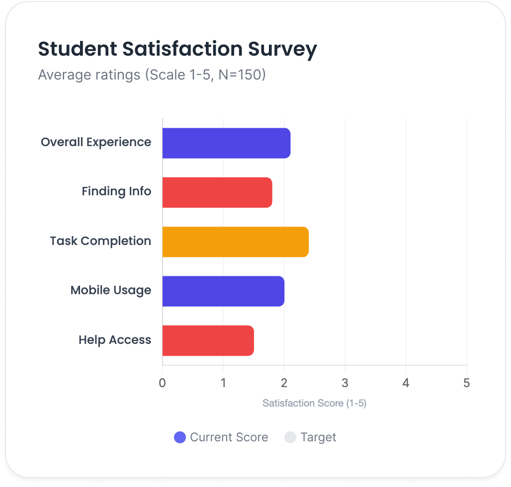 Understand why students struggled with the existing Student Portal and identify opportunities to improve clarity, navigation, and task completion.